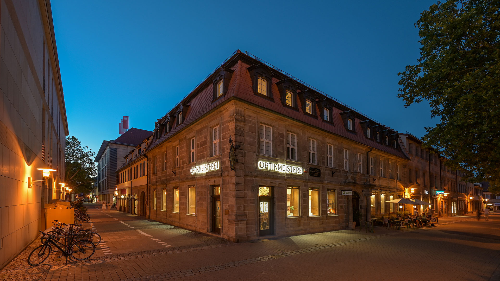 Die OPTIKMEISTEREI führt eine hauseigene Optik-Fachwerkstatt. Im charismatischen Bürgerhaus der ehemaligen Hofapotheke von Erlangen werden Gläser und Brillen meisterlich repariert und aufgearbeitet. Hier nutzen wir innovativste Technik für perfekte Ergebnisse auch bei der Sehschärfenbestimmung und bei der Anpassung Ihrer Kontaktlinsen. In unseren Präsentationsräumen finden Sie eine ausgewählte Produktpalette mit den interessantesten und besten Marken.